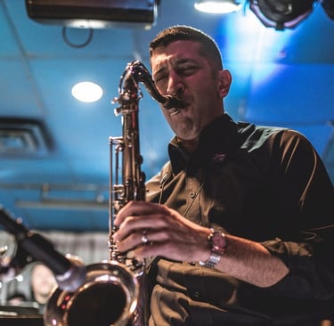 Vee Popat - soprano, alto, & tenor saxophones. Artistic Director, Greenville Fine Arts Center. Would rather be golfing.